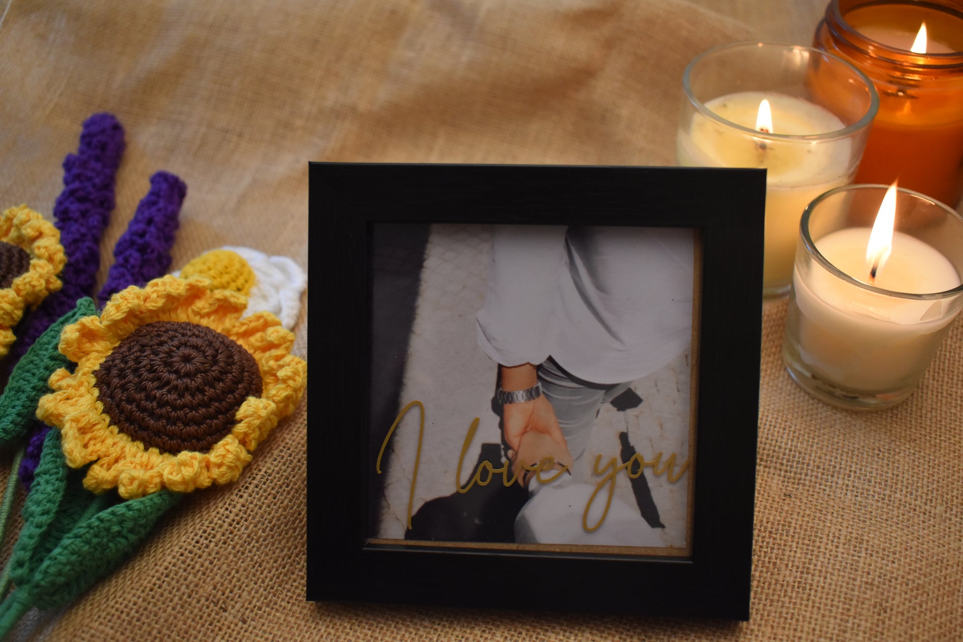 The Square of Joy, Tailored for You. Perfect for those cherished Instagram-ready snaps or little daily square photos. Customize with a message and a memory, making this compact frame a charming, intimate piece of desk-top décor that always keeps your favorite tiny memory within arm's reach.